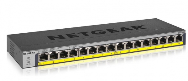 Der Netrgear GS116PP ist ein Gigabit Unmanaged Switch mit integrierter PoE+ Technologie. Alle 16 Ports des Switches unterstützen PoE/PoE+. Er eignet sich hervorragend für das Bereitstellen von Wireless APs, Pan/Tilt/Zoom und festen IP-Kameras, VoIP-Telefone, zutrittsbeschränkte Sicherheitstürschlösser oder andere IoT PoE-betriebene Geräte. Der Gigabit Ethernet Switch mit 16 Gigabit-Kupferports besitzt ein Desktop Metallgehäuse. Der kleine Formafaktor kombiniert mit der Möglichkeit zur Rack- und Wandmontage gibt einem die Flexibilität, diesen Switch in kleineren IT-Schränken platzieren, in einem 19" Rack, an der Wand oder auf dem Schreibtisch.