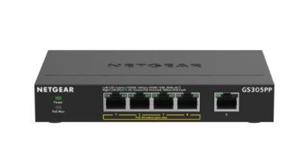 Netgear GS305PP-300EUS - 5-Port Gigabit Ethernet PoE+ Unmanaged Switch