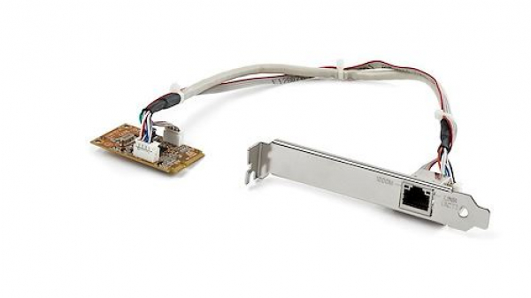 Die Mini PCI Express Gigabit-Netzwerkadapterkarte ST1000SMPEX fügt einem Mini PCI Express (PCI Express Mini Card, Mini PCIe)-fähigen Computersystem, z. B. Mini-ITX-Hauptplatinen, Netzwerk-Konnektivität von 100 MBit/s hinzu. Dank unterstützender Funktionen wie NDIS5 Checksum und Large Send Offload für geringere CPU-Nutzung, Wake-on-LAN (WOL) und Remote Wake-up-Energieverwaltung, Jumbo Frames und VLAN Tagging ist der Mini PCI Express Gigabit-Adapter für eine Reihe von Szenarien geeignet. Dieser hochwertige Mini PCIe-Netzwerkadapter wird für zusätzliche Installationsoptionen mit Low Profile-/Halbhöhen-Slotprofil geliefert und ist hervorragend für kompakte oder integrierte Systeme, die ursprünglich nicht über Gigabit-Netzwerkfähigkeiten verfügen, oder zum Hinzufügen einer Netzwerkverbindung ohne Besetzen eines vollen PCI Express-Steckplatzes geeignet. Mit 2-jähriger StarTech.com-Garantie sowie kostenloser technischer Betreuung für gesamte Lebensdauer des Geräts.