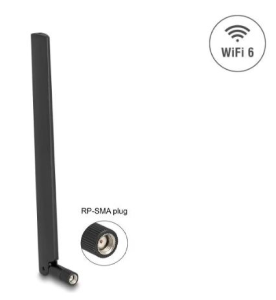 DeLock 90677 - WiFi 6 Antenne RP-SMA Stecker 3 - 6 dBi omnidirektional mit Kippgelenk schwarz