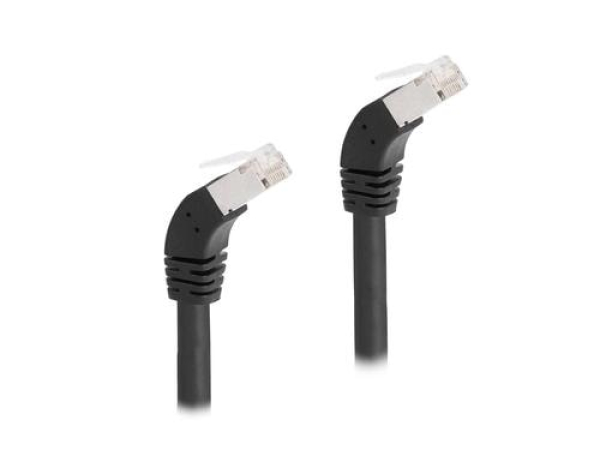 Delock Patchkabel 45 Grad unten gewinkelt Cat 6A, S/FTP, 0.5 m, Schwarz / nach unten gewinkelt, 0.5m, schwarz / Thema: Patchkabel