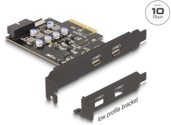 DeLock 90345 - PCIe x4 Karte zu 2 x extern USB Type-C + 1 x int.USB 10 Gbps Typ-E Key A und 1 x 19 Pin Pfostenstecker