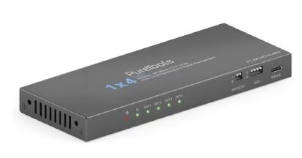 Erleben Sie die ultimative audiovisuelle Leistung mit dem PureTools HDMI 2.1 1 x 4-Splitter einschliesslich Downscaling und Audio-De-Embedding. Mit einer leistungsstarken FRL-Bandbreite von 48 Gbps sorgt dieser hochmoderne Splitter für eine einwandfreie Übertragung von hochauflösenden Inhalten. Geniessen Sie atemberaubende Bilder in 8K bei 60 Hz oder 4K bei 120 Hz, mit Unterstützung für HDR10+, Dolby Vision und DTS-HD Audioformate. Die umfassenden Kompatibilitätsoptionen des Splitters, einschliesslich EDID-Management und HDCP-Handshake-Management, garantieren eine nahtlose Integration in Ihr Setup. Profitieren Sie von der Flexibilität von digitalem SPDIF und analogem 3.5-mm-Audio-De-Embedding. Darüber hinaus ermöglicht der innovative CEC On/Off-Schalter die mühelose Steuerung von HDMI-Geräten. Mit seinen fortschrittlichen Downscaling-Funktionen gewährleistet der Splitter volle TV-Kompatibilität von 8K auf 4K und 8K/4K auf 1080p. Tauchen Sie ein in eine Welt unvergleichlicher audiovisueller Leistung und werten Sie Ihr Home-Entertainment-System mit der PureTools HDMI 2.1 Splitter Family auf. Erhöhen Sie Ihr Fernseherlebnis auf neue Höhen und geniessen Sie die Zukunft der Konnektivität.