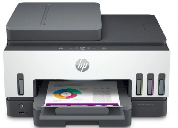 Der Smart Tank 7605 druckt effizient und mit hoher Qualität: Dieser Multifunktions-Tintenstrahldrucker ohne Patronen arbeitet mit integrierten Tintentanks. Tinte wird direkt in die Tanks gefüllt - dies ist deutlich kostengünstiger und umweltfreundlicher als das Einsetzen von Tintenpatronen. Mit im Lieferumfang dieses 4-in-1-Multifunktionsdruckers ist Tinte für bis zu 12000 Seiten/ISO schwarz und bis zu 8000 Seiten/ISO Farbdruck bereits enthalten. Darüber hinaus ist der Smart Tank 7605 flexibel einsetzbar: Er verfügt über eine WLAN- und Bluetooth-Schnittstelle, wird bequem an der Vorderseite bedient und hat einen Flachbettscanner sowie eine Kopierfunktion. Auch eine Faxschnittstelle ist integriert. Hinzu kommen eine Duplexeinheit für beidseitigen Druck und ein Vorlageneinzug an der Oberseite.
