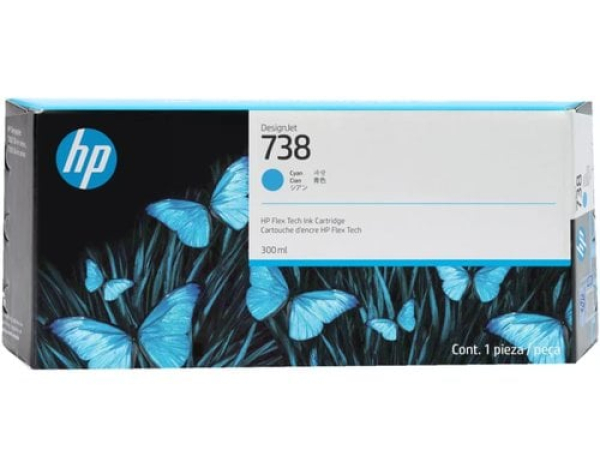 HP Tinte Nr. 738 (676M6A) Cyan / DesignJet T850, T950, 300ml / Thema: Tinte