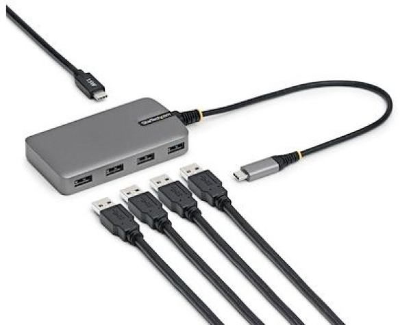 Dieser USB-C Hub erweitert einen Desktop-PC oder Laptop mit USB-C-Anschluss um vier USB-A 3.2 Gen 1 (5Gbps) Ports. Der Hub wird über das integrierte 30 cm Host-Kabel an einen USB-C-Port des Computers angeschlossen. Er ist abwärtskompatibel zu USB 2.0 (480Mbps) Geräten und unterstützt damit eine breite Auswahl an modernen und älteren USB-Peripheriegeräten wie USB-Sticks, externe HDDs/SSDs, HD-Kameras, Mäuse, Tastaturen, Webcams und Headsets. Durch seine kompakte Bauform ist der USB-Hub ideal für unterwegs und leicht zu transportieren.
