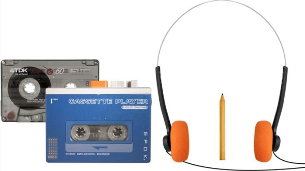 EPOK - Tragbarer Kassettenspieler mit Bluetooth [inkl. Bleist. und C60 Kassette]