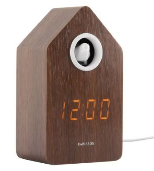 KARLSSON Digitalwecker Kuckuck Dark wood veneer - inkl. USB Kabel