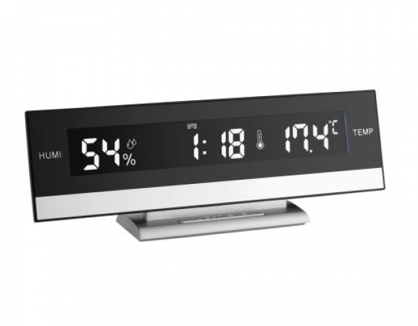 TFA Dostmann Digitalwecker mit Raumklima Schwarz / mit grossen LED Leuchtziffern / Thema: Wecker