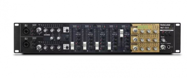 Der MZ-223 ist ein 19" Einbau-Mischer für die Festinstallation in Geschäften, öffentlichen Einrichtungen, Restaurants, Bars, Themenparks oder Hotels. Er ist dafür vorgesehen, drei verschiedene Räume oder Zonen mit Hintergrundmusik und Ansagen aus verschiedenen Quellen zu versorgen. Jeder der sieben Eingangskanäle kann an eine beliebige oder alle drei Ausgangszonen geleitet werden. Der Mischer bietet fünf Eingangskanäle für Linepegel-Signale von analogen Wiedergabequellen wie Media-Playern, Radioempfängern oder Kassettendecks. Zwei Kanäle lassen sich auf Phono umschalten, um Plattenspieler anschliessen zu können. Alle Kanäle verfügen über eigene Eingangspegelregler, Übersteuerungs-LED sowie einen Fader. Zwei zusätzliche Mikrofon-Eingangskanäle – mit Pegelreglern, LED-Pegelanzeigen und 3-Band-Klangregelung – stehen für Durchsagen, Sprachübertragung, Karaoke oder andere Anwendungen mit dynamischen Mikrofonen zur Verfügung. Wenn diese beispielsweise für Ansagen genutzt werden, lässt sich mithilfe der integrierten Talkover-Funktion automatisch die Lautstärke der Hintergrundmusik entsprechend der Mikrofonlautstärke verringern. Jeder der Summenausgänge für die drei Zonen ist mit Pegelregler, LED-Pegelanzeige und 3-Band-Klangregelung ausgestattet. Zudem gibt es einen unabhängigen Monitorausgang für den Regieraum und einen Kopfhörerausgang mit Pegelregler zum Abhören ausgewählter Eingangskanäle (vor dem Fader) und der Summenausgänge.