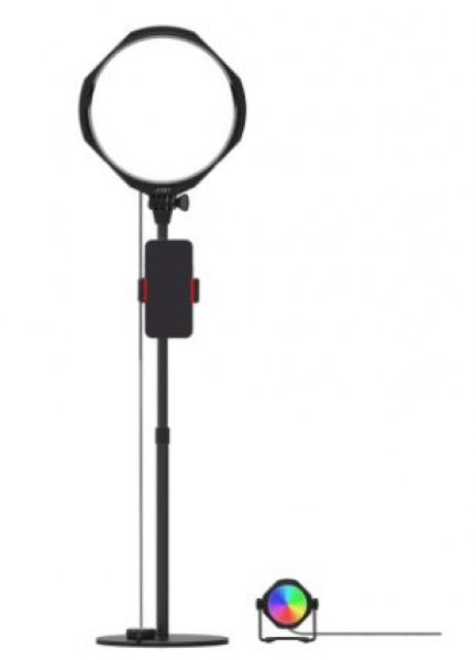 Alles, was du brauchst, um dein erstes YouTube-Heimstudio zu beleuchten. Das Beamo? Studio Deluxe Lighting Kit ist eine Komplettlösung für die Beleuchtung deines Heimstudios und enthält ein Key Light und ein farbiges Hintergrundlicht, um deinen Kanal zu starten. Erstelle fesselnde Inhalte mit dem einfach zu bedienenden Beamo? Studio Key Light. Die eingebaute Soft-Lens-Lichtstreuung sorgt dafür, dass du die beste Bildqualität für deine Talking Head Videos bekommst. 10 Helligkeitsstufen und 3 Farbtemperaturen können mit der mitgelieferten Kabelfernbedienung gesteuert werden, die auch magnetisch an der Basis des Stativs befestigt wird. Der Tischständer ermöglicht es, das Key Light zu neigen und auf die ideale Höhe (68-95 cm) für das Shooting zu bringen. Die Smartphone- Halterung wird von einem flexiblen GorillaPod® Arm gestützt, der das Abwinkeln und Einrahmen erleichtert. Blitzschuhe befinden sich am Key Light und an der Smartphone-Halterung, wenn du ein Wavo?-Mikrofon zur Verbesserung der Audioqualität hinzufügen möchtest. Mit dem Beamo? Studio-Hintergrundlicht mit mehreren Winkeln, 10 Helligkeitsstufen und 12 einstellbaren Farben kannst du deinen Videos Farbe geben. Beide Leuchten sind USB-betrieben. Füge einfach dein Smartphone oder deine Kamera hinzu und schon kannst du dein Publikum vergrößern.
