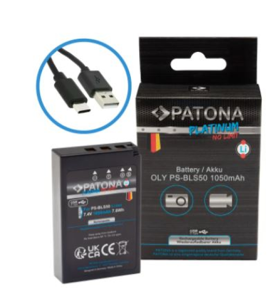 Die Platinum Serie ist die hochwertigste, langlebigste und innovativste Serie aus dem Hause PATONA. Mit dem Kauf eines Akkus aus der PATONA Platinum Serie erwerben sie ein ausgezeichnetes, erlesenes Produkt das sie faszinieren wird.Dieser Akku hat einen USB-C Eingang, sodass dieser auch mit einem USB-C Kabel (im Lieferumfang enthalten) und Netzteil aufgeladen werden kann. Technische Daten: 1050 mAh / 7,8Wh 7,4 Volt USB-C Input: max. 1.2A (Höhere Eingangsströme werden automatisch über IC-Steuerung des Akkus reduziert) mit Lade-LED Li-Ion 100% kompatibel mit dem originalen Olympus-Akku Der Akku ist passend für Digital Kamera Modelle: Olympus E-450, E-P7, E-P3 OM System OM-5 OM-D E-M10, OM-D E-M10 Mark II, OM-D E-M10 Mark III, OM-D E-M10 Mark III S, OM-D E-M10 Mark IV, OM-D E-M5 Mark III Pen E-P3, E-PL1, E-PL10, E-PL2, E-PL3, E-PL5, E-PL6, E-PL7, E-PL8, E- PL9, E-PM1, E-PM2 Stylus 1, 1s Bezeichnung der kompatiblen Original-Akkus: Olympus BCS-1, BCS-5, BLS-5, BLS-50