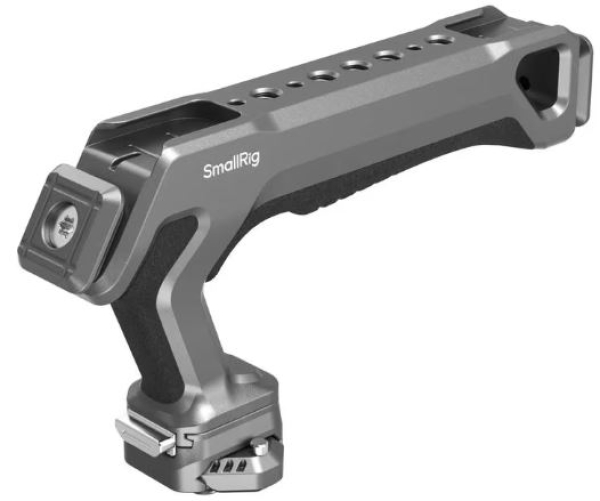 Mit dem HawkLock H21 Quick Release Top Handle Kit von SmallRig können Sie Ihre Kamera tragen, Zubehör hinzufügen und Aufnahmen aus niedrigen Winkeln machen. Der Griff wird mit einer HawkLock NATO-Klemme und einer HawkLock NATO-Schnellwechselplatte mit einer 3/8"-16-Drehsicherung im ARRI-Stil sicher an Ihrem Kamerakäfig oder Rig befestigt. Die HawkLock-NATO-Schienen sind mit Einkerbungen versehen, die die Stabilität der Befestigung erhöhen und ein leichtes Auf- und Abgleiten ermöglichen. Der Griff wird an der HawkLock-Schienenplatte des Käfigs befestigt, die eine seitliche Verschiebung, eine sichere Verriegelung und eine schnelle Entriegelung ermöglicht. Dieser vielseitige Griff verfügt über zwei Standard-Kaltschuhmontagen sowie mehrere verdrehsichere 1/4"-20-Gewinde entlang des Schafts. An beiden Enden befinden sich HawlLock-Aussenbefestigungen im NATO-Stil für zusätzliches NATO-Klemmenzubehör. Der Griff besteht aus langlebigen Aluminium- und Edelstahlkomponenten.
