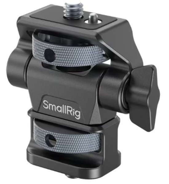 Die schwenk- und neigbare Monitorhalterung von SmallRig mit 1/4"-20-Schrauben 4886 wurde entwickelt, um zusätzliche Erweiterungsoptionen zu bieten, die die Nutzung des Monitors erleichtern. Die Monitorhalterung ist mit zwei einziehbaren 1/4"-20-Stiften ausgestattet und bietet Kompatibilität mit Ninja V- und V+-Monitoren. Dadurch wird Stabilität gewährleistet, um Abweichungen zu verhindern und die Gerätesicherheit zu gewährleisten. Dieser Monitorständer unterstützt eine Neigungseinstellung von 180°, sodass die Neigungsachse mit einem Knopf schnell festgezogen oder gelöst werden kann, um Geräte mit unterschiedlichem Gewicht besser aufzunehmen und so die Haltbarkeit zu gewährleisten. Er bietet auch eine horizontale Einstellung von 360° durch Festziehen oder Lösen der horizontalen Achse mit dem Inbusschlüssel. Schraubenschlüsselverstärkungslöcher an beiden Flügelschrauben erleichtern die einfache Montage und Demontage. Darüber hinaus ist dieser Monitorhalter kompatibel mit dem Cage für DJI Osmo Action 4 / 3 (ID 4119B) und weiterem Zubehör für einen vielseitigen Einsatz.