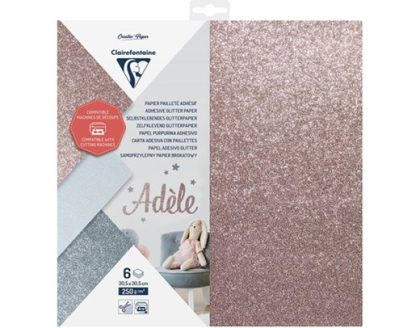 Clairefontaine Glitzerpapier 6 Blatt, zum Plotten / 250g/m2, 30.5x30.5cm, 6 Blatt, z.plotten / Thema: Bastelpapier