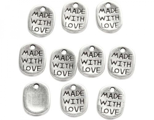 Creativ Company Anhänger MADE WITH LOVE 12 mm, versilbert, 10 Stk. / Versilbert, 10 Stk., Lochgrösse 1 mm / Thema: Anhänger
