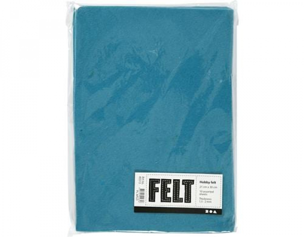 Creativ Company Bastelfilz 10 Blatt, Türkis / türkis, 1.5 - 2 mm / Thema: Filzen
