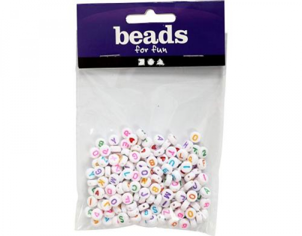 Creativ Company Buchstabenperlen 7 mm aus Kunststoff / farbig, 7 mm, L-Grösse: 1.2 mm, 200 Stück / Thema: Perlen