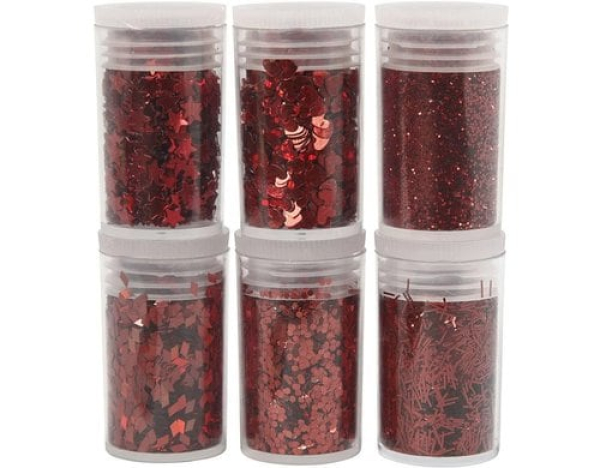 Creativ Company Glitzerset Rot, 6 x 5 g / Bio rot, 6 x 5 g / Thema: Glitzer