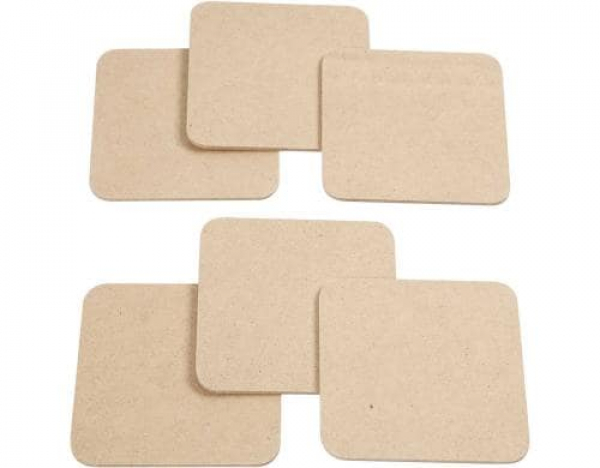 Creativ Company Holzartikel 10 cm Untersetzer / 6 Stück, 10 x 10 cm / Thema: Holzartikel