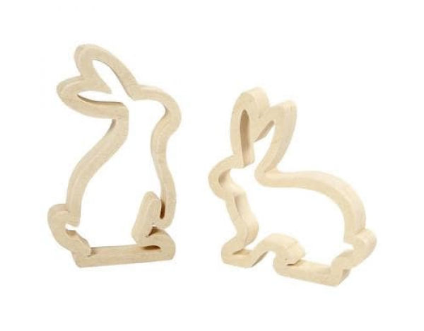 Creativ Company Holzhase Hellbraun, 2 Stück / 2 Stück, 14 x 13 x 2 cm / Thema: Osterbasteln