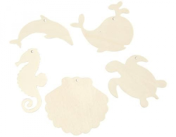 Creativ Company Holzkleinteile Meerestiere 5 Stück, Nature / 5 Stück, H 5 - 10 cm / Thema: Holzartikel