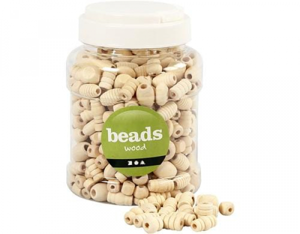 Creativ Company Holzperlen Nature, 400 ml / D: 5 - 28 mm, Lochgrösse 2.5-3 mm / Thema: Perlen