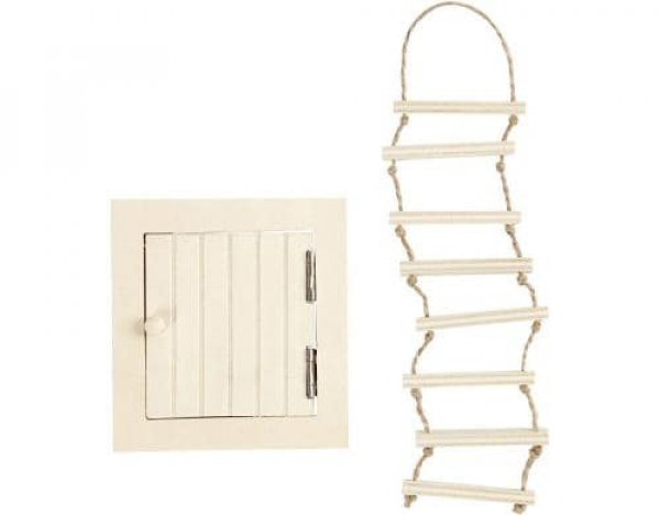 Creativ Company Mini-Möbel Dachluke und Strickleiter / Dachluke und Strickleiter, Sperrholz / Thema: Miniaturwelt