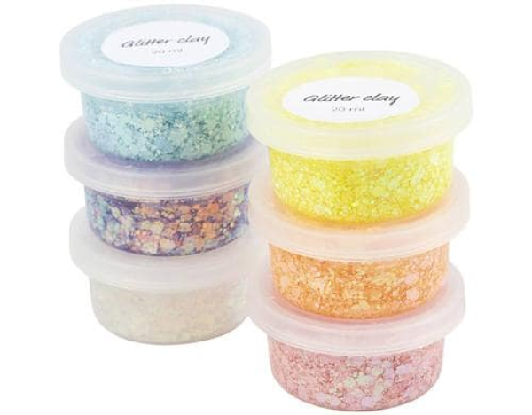 Creativ Company Modelliermasse Glitter Clay 6 x 20 ml, PastellfarbenSortierte Farben, 6x20 mL / Thema: Modelliermasse