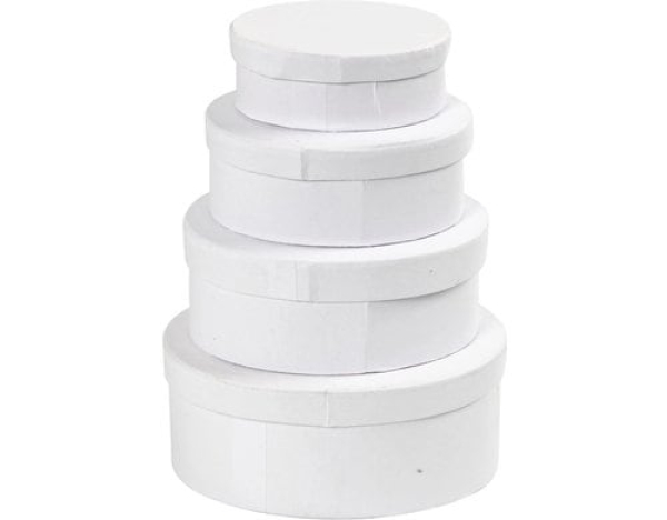 Creativ Company Papp-Schachtel oval 4 Stück, Weiss / 4 Grössen / Thema: Papp-Artikel