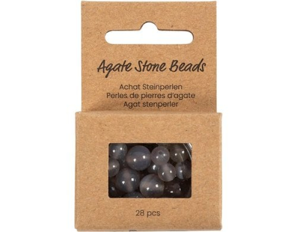 Creativ Company Perlen-Set Achatstein Transparent Grau, 6-10 mm / 6-10 mm, Lochgrösse: 0.9-1mm, grau / Thema: Perlen
