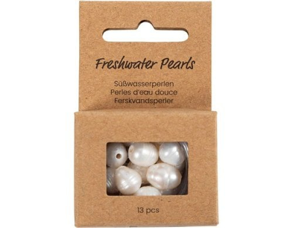 Creativ Company Perlen-Set Süsswasserperlen 9-11 mm / 9-11 mm, Lochgrösse: 2 mm, weiss / Thema: Perlen