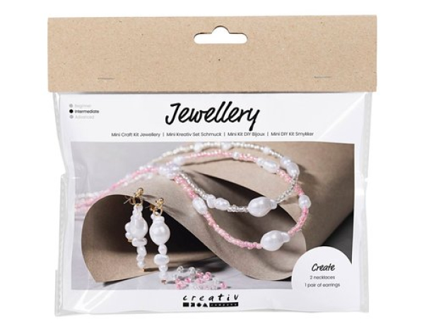 Creativ Company Schmuck Bastelset Halsketten und Ohrringe Rosa/Weiss / Klassische Perlen, inkl. Anleitung / Thema: Schmuck Bastelset