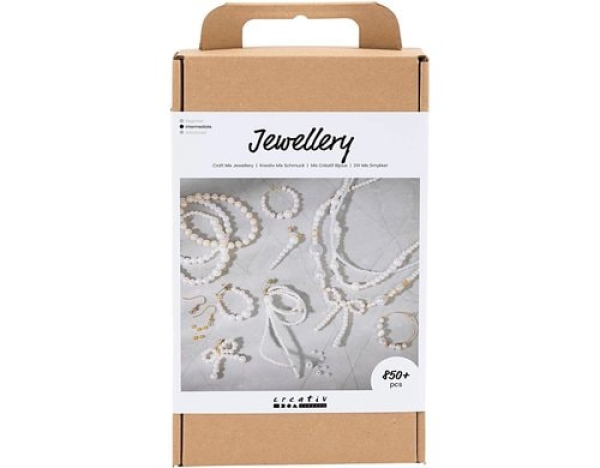 Creativ Company Schmuck Bastelset Perlen Weiss/Vergoldet / Klassische Perlen, inkl. Anleitung / Thema: Schmuck Bastelset