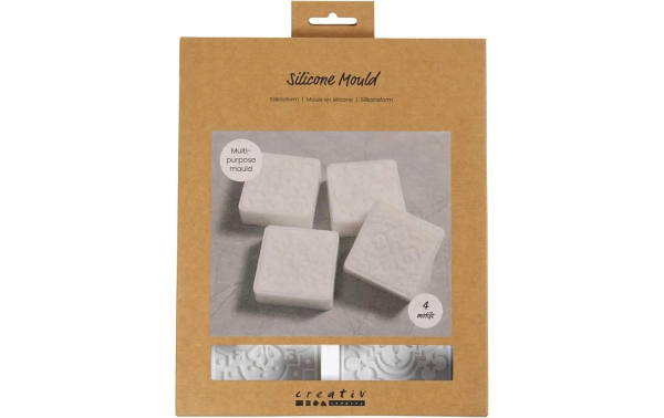 Creativ Company Silikon Form Giessform Quadratisch, 4 Stück / Seife mit Design, 4 Stück / Thema: Kosmetik Selbermachen
