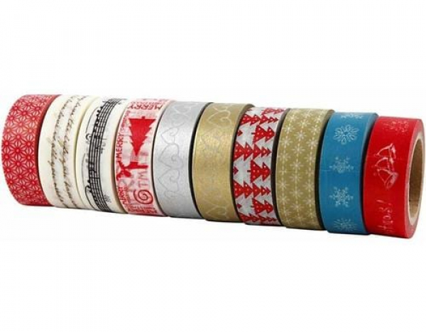 Creativ Company Washi Tape Weihnachten 10 Rollen, 15 mm, 10 m / 10 Rollen, 15 mm, 10 m / Thema: Weihnachtsbasteln