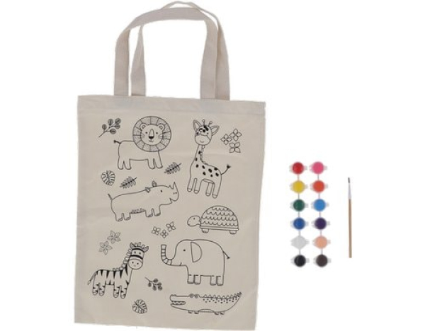 Esschert Design Tragetasche Dschungel Polyester, 1 Stück, Beige / ausmalen, 29x0.5x36.5 cm (LxTxH), Polyester / Thema: Textil Grundmaterial