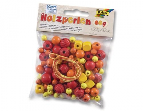 Folia Holzperlen Gelb/Rot / Packung à 60g / Thema: Perlen