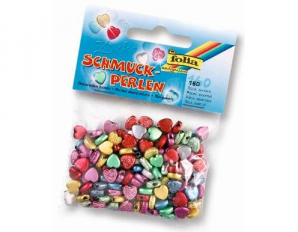 Folia Perlen Herzen, Mehrfarbig / Packung à 160 Stück / Thema: Perlen