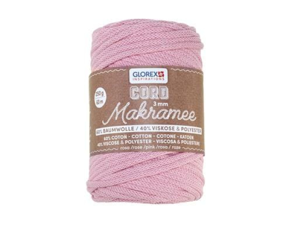 Glorex Wolle Makramee Cord gewebt 63 m x 3 mm, 250g, Rosa / 3mm, 250g, 60% Coton, 40% viskose, rosa / Thema: Wolle