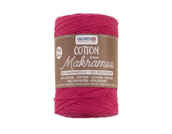 Glorex Wolle Makramee Cotton 225m x 2 mm, 250g, Neonpink / 2mm, 250g, 80% Coton, 20% Viskose, nepink / Thema: Wolle