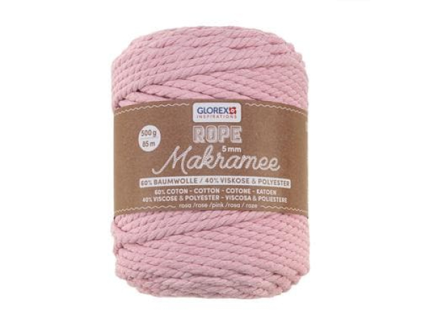 Glorex Wolle Makramee Rope gedreht 85 m x 5 mm, 500g, Rosa / 5mm, 500g, 60% Cotton, 40% Viskose, rosa / Thema: Wolle