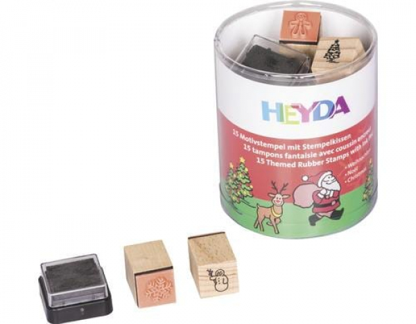 Heyda Stempel Set Weihnachten / 15 Stempel, 1 Stempelkissen / Thema: Weihnachtsbasteln