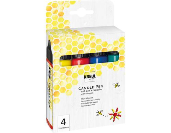 Kreul Kerzenmalfarbe Starter 4 Stück, je 29 ml / Bienenwachs, 4 Stück / Thema: Farben
