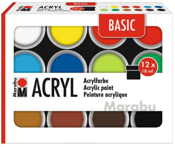 Marabu Acrylfarbe Basic Set 12 x 18 ml