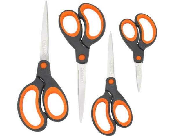 Rapesco Schere Soft Grip Schwarz/Orange, 4 Stück, Edelstahl / 1x21.5cm,1x19.8cm,1x16.5cm,1x13.3cm,orange / Thema: Scheren