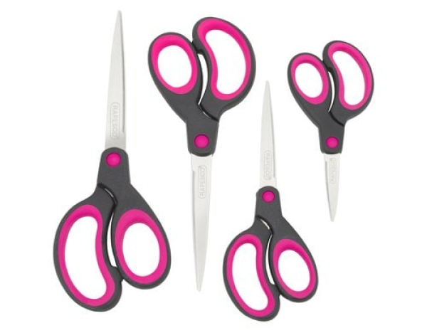 Rapesco Schere Soft Grip Schwarz/Pink, 4 Stück, Edelstahl, Universal / 1x21.5cm,1x19.8cm,1x16.5cm,1x13.3cm,pink / Thema: Scheren