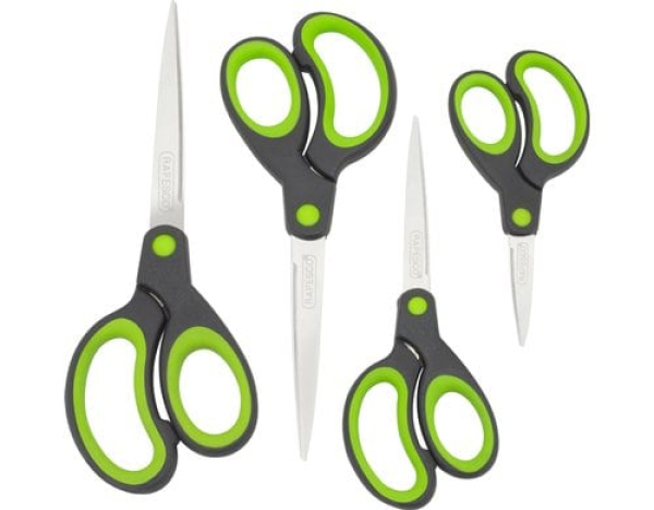 Rapesco Schere Soft Grip Schwarz/grün, 4 Stück, Edelstahl, Universal / 1x21.5cm,1x19.8cm,1x16.5cm,1x13.3cm,grün / Thema: Scheren