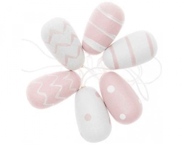 Rico Design Aufhänger Osterei 6 Stück, Hellrosa/Weiss / Rosa, 6 Stück / Thema: Osterbasteln
