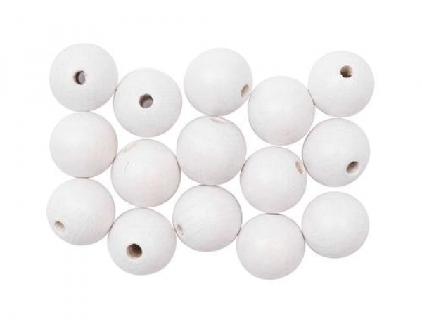 Rico Design Holzperlen Gebohrt 12 mm Weiss, 15 Stück / 12 mm, 15 Stück / Thema: Perlen